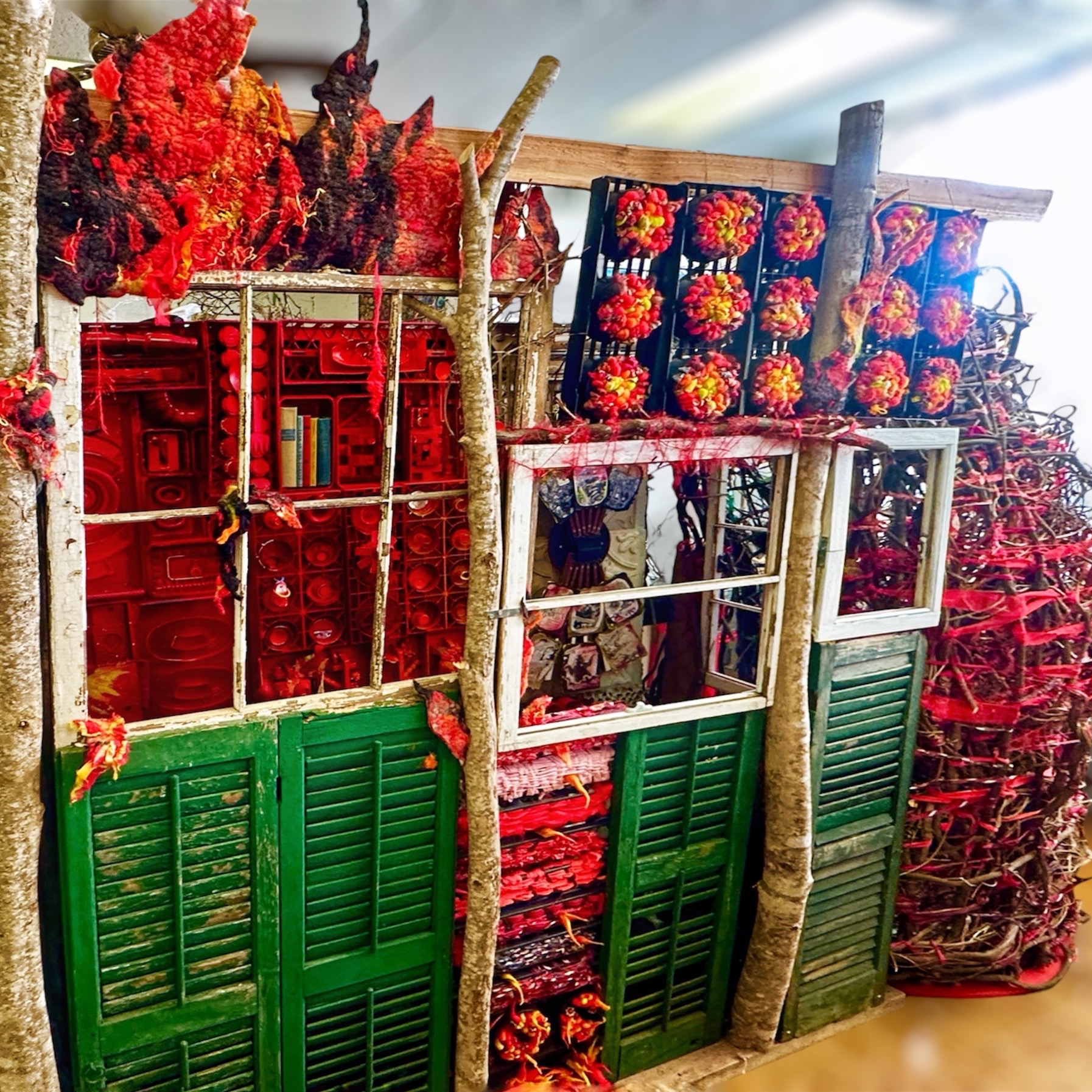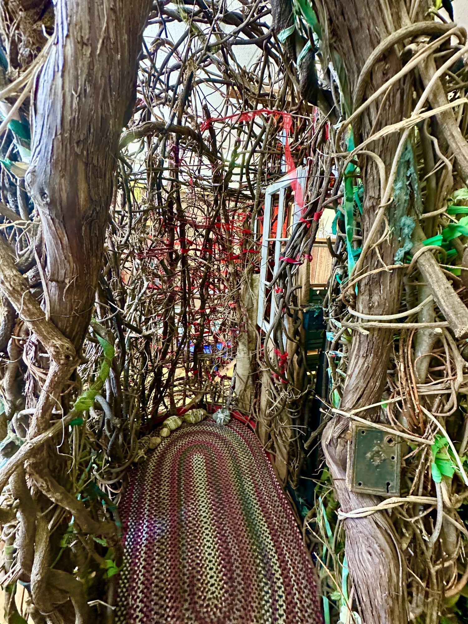 woven from foraged, found and salvaged materials.