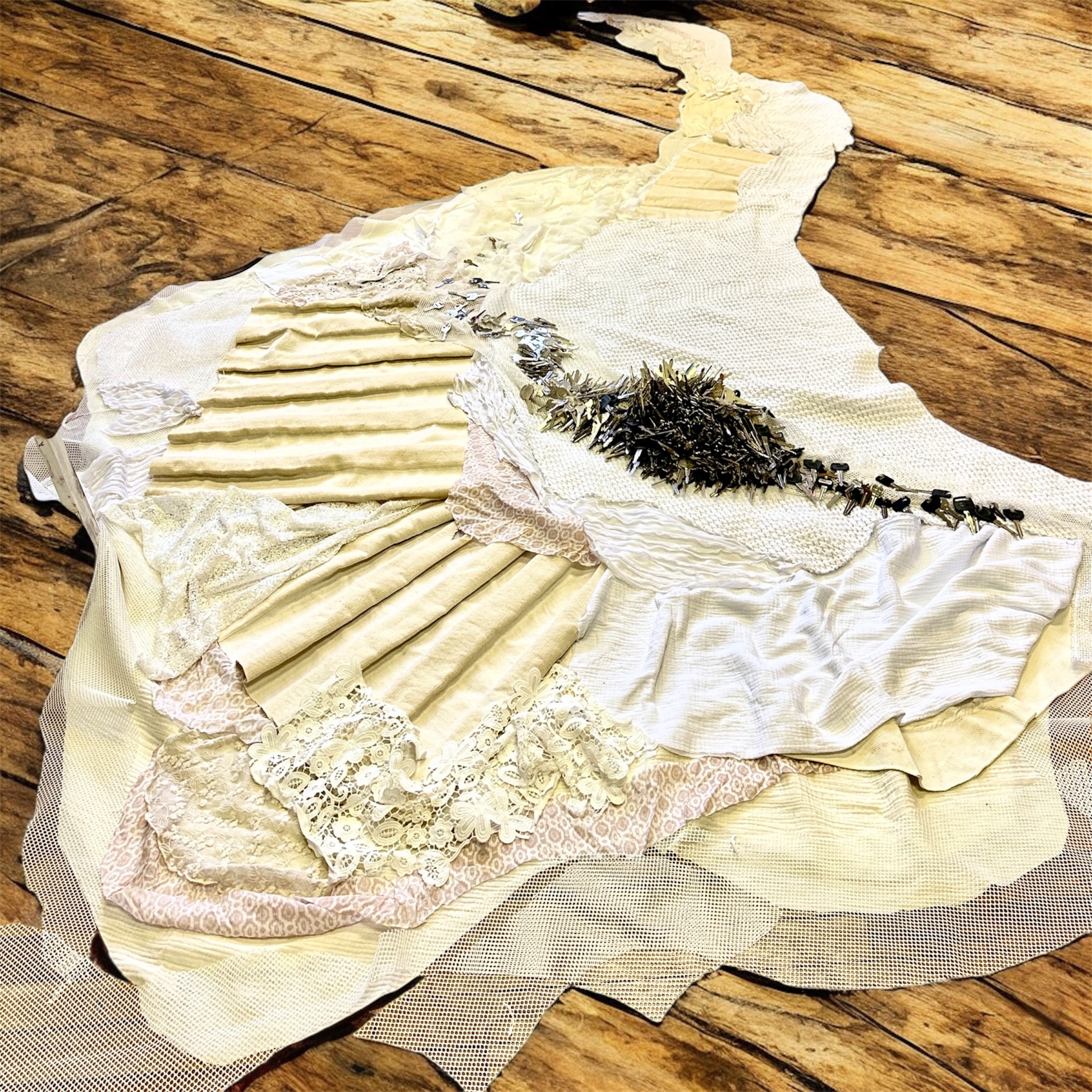 The deconstructed textile and salvaged keys floor flood that connects the Dream State Phase with the Unwalled phase of the